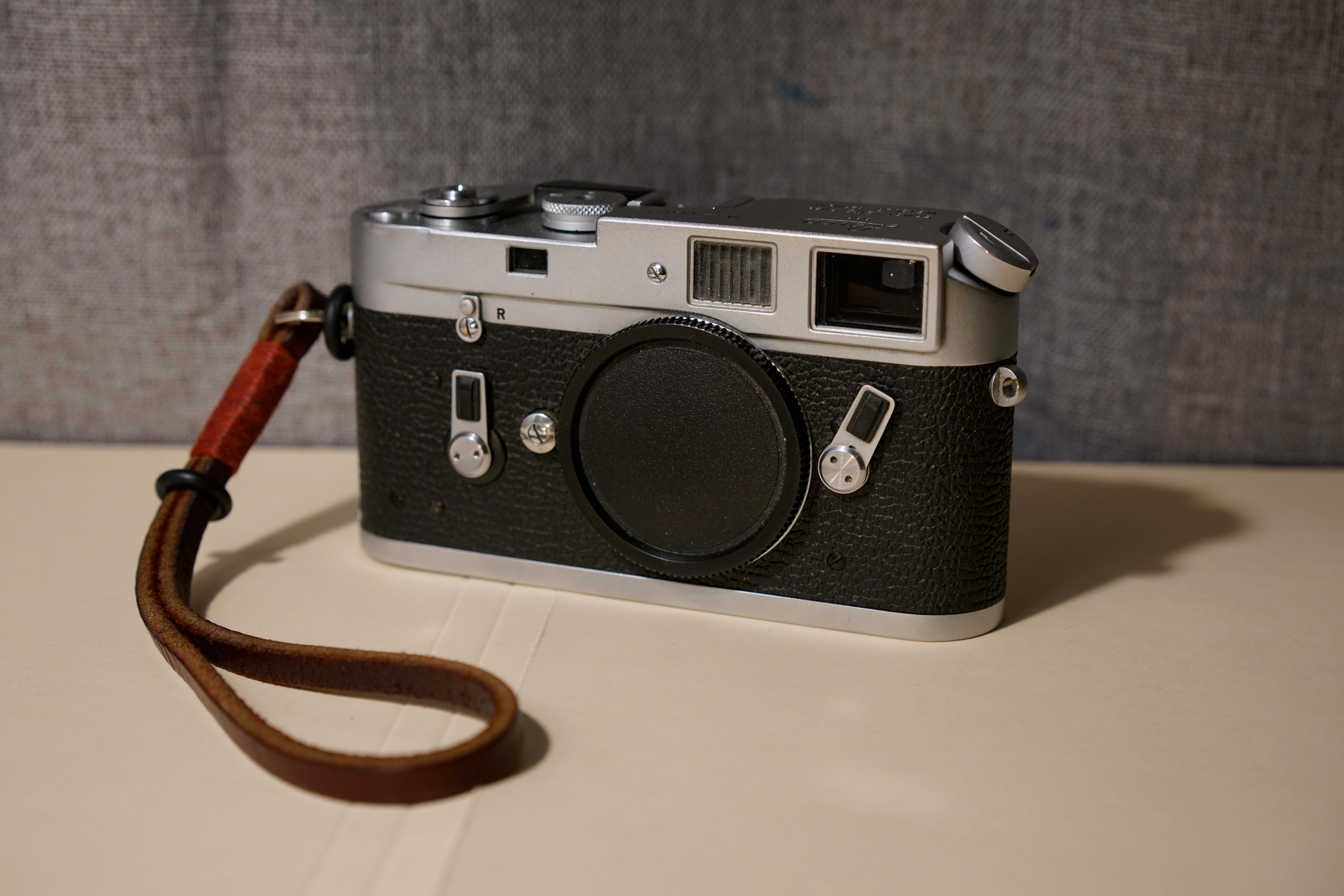 这台M4是eBay上淘的,1967年产,不到$1000,买之前刚做过CLA,成色不错,唯一瑕疵是正面快门按钮前有被磕过的凹痕(不算明显),其余功能一切正常。另外原机主是一名记者,这台M4背后铭刻着机主的名字。机子主要买来自用拍片,非收藏,所以名字也就无所谓了。